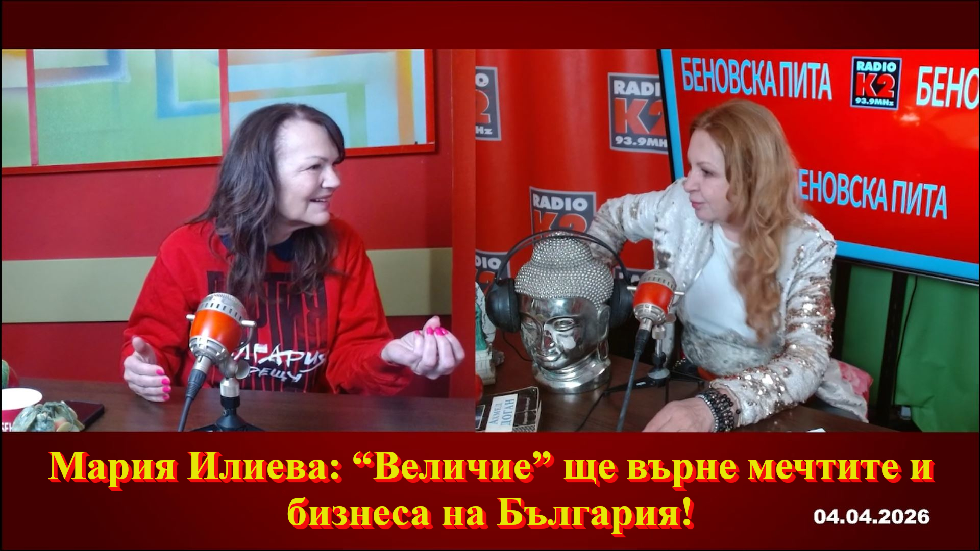 Мария Илиева, „Величие", пред Илиана Беновска в youtube ТВ Беновска пита-Радио К2, фейсбук страницата на предаването "Беновска пита", профила Iliana Benovska, Радио К2 и Канал 3 на 4-ти април 2026 година.