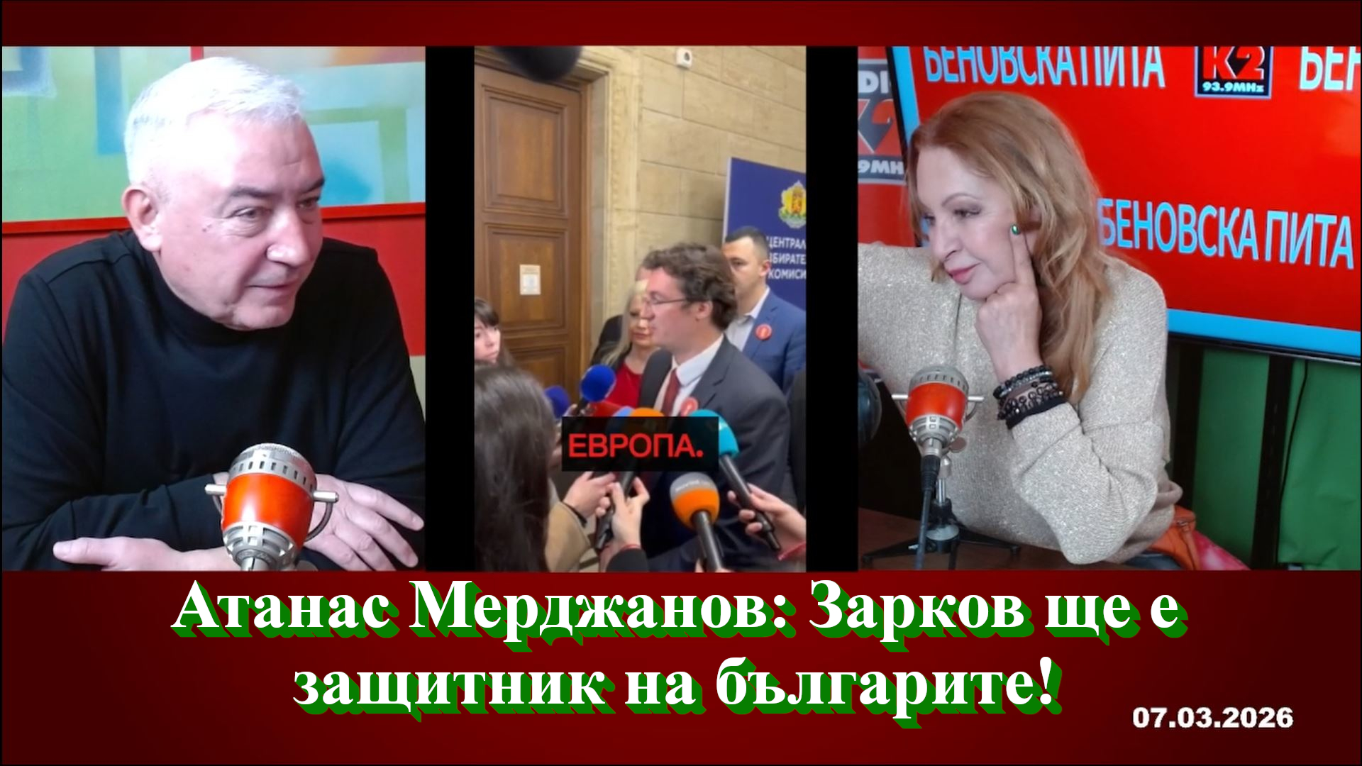 Атанас Мерджанов, БСП, пред Илиана Беновска в youtube ТВ Беновска пита-Радио К2, фейсбук страницата на предаването "Беновска пита", профила Iliana Benovska, Радио К2 и Канал 3 на 7-и март 2026 година.