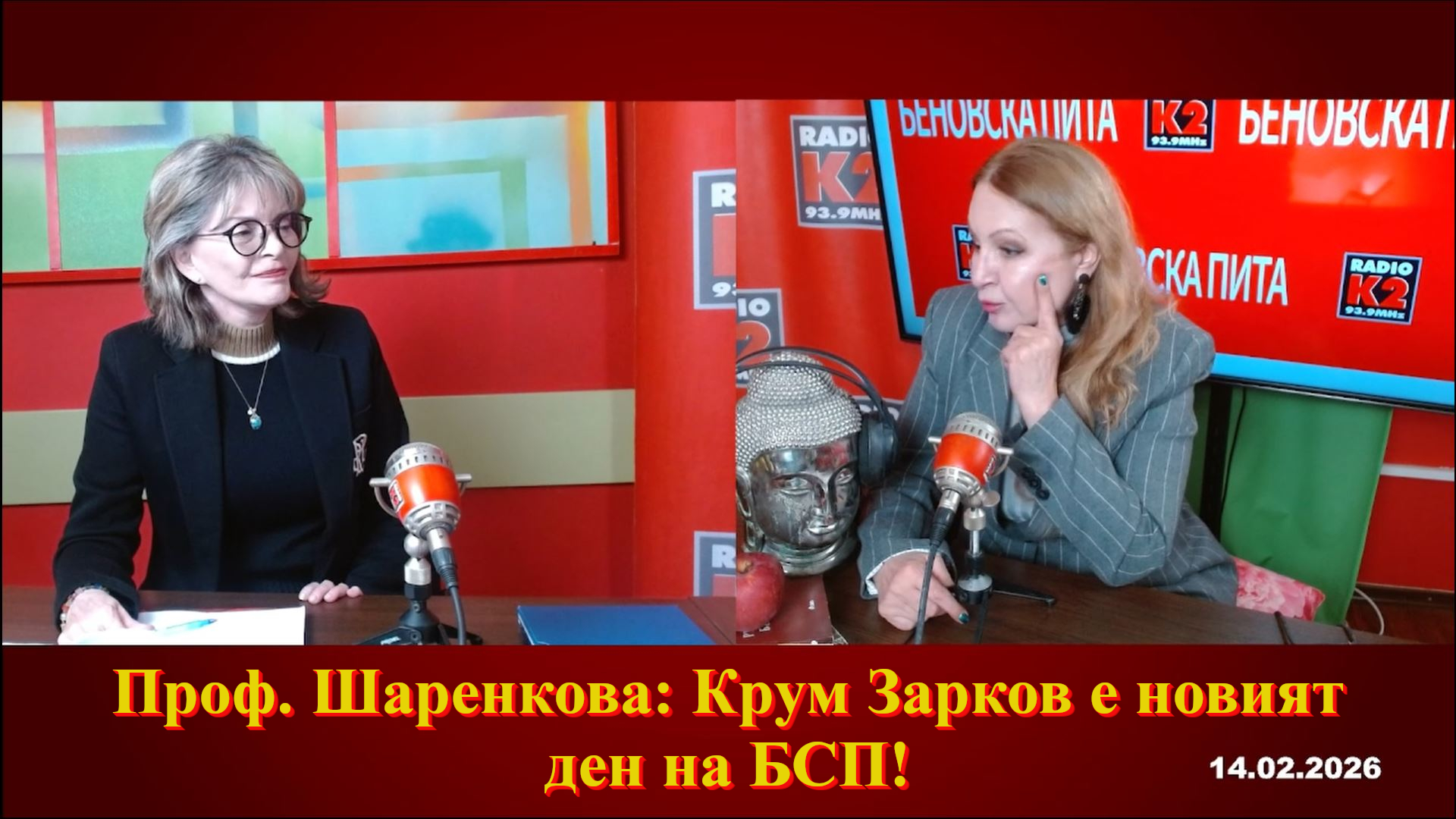 проф. Светлана Шаренкова, БСП, пред Илиана Беновска в youtube ТВ Беновска пита-Радио К2, фейсбук страницата на предаването "Беновска пита", профила Iliana Benovska, Радио К2 и Канал 3 на 14-и февруари 2026 година.