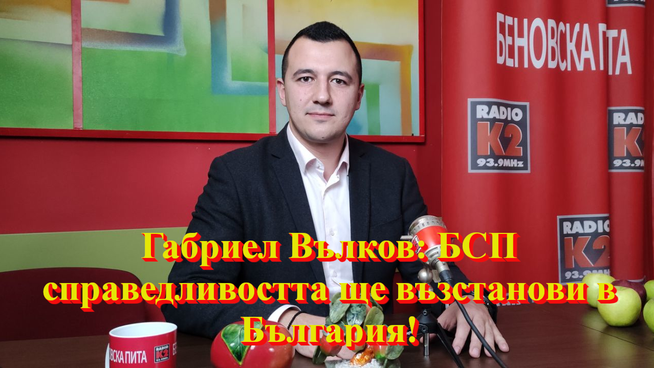 Габриел Вълков, БСП, пред Илиана Беновска в youtube ТВ Беновска пита-Радио К2, фейсбук страницата на предаването "Беновска пита", профила Iliana Benovska, Радио К2 и Канал 3 на 28-и март 2026 година.
